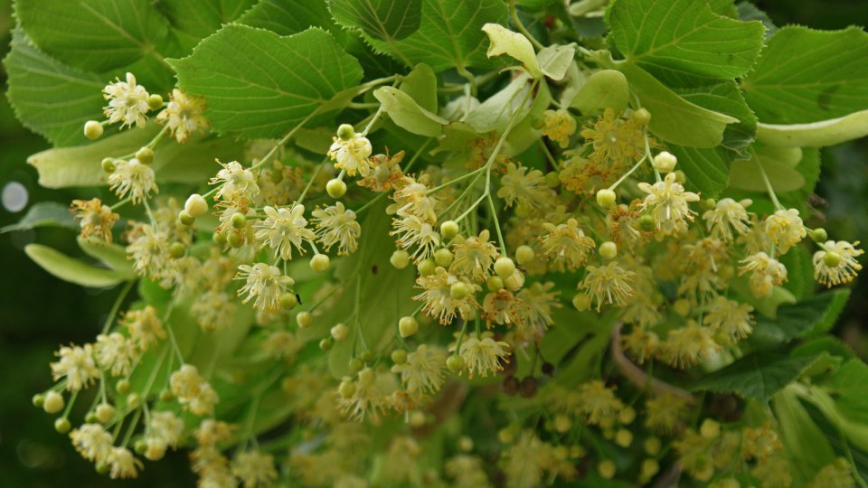 Mucilagens (arabinogalactanas), óleo essencial (farnesol, geraniol, eugenol, acetato de geranilo), flavonóides (kaempferol, tilarosídeo, astragalosídeo, rutosídeo, hiperosídeo, quercetosídeo), leucoantocianosídeos, ácidos orgânicos (cafêico, clorogênico, p-cumarínico), hidroxicumarinas, taninos, vitamina C, magnésio.